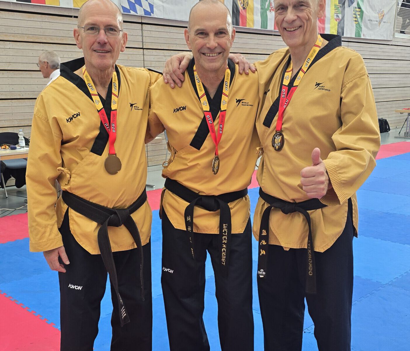 Unser Sportler Volker Lohmeier konnte dieses Wochende bei den Deutschen Meisterschaften Technik 2025 der DTU in Aichwald (Baden Württemberg) eine hervorragende Leistung zeigen. Gemeinsam mit Dieter Schöps und Dieter Herbst erreichte er im Team des Landesleistungskaders der NWTU die Bronzemedaille in der Klasse Senioren männlich, Alter 61+.